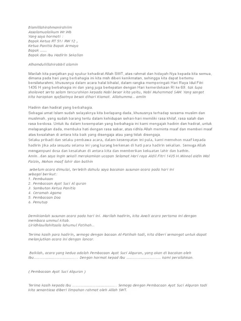 Itulah bacaan doa halal bi halal idul fitri yang bisa anda . Kumpulan 3 contoh sambutan halal bihalal idul fitri singkat dan terbaru 2021 dalam bahasa indonesia, pas buat acara resmi dan tidak resmi. Meskipun tahun ini silaturahmi masih dilakukan secara virtual. Ceramah agama/mau'idzah hasanah dilanjutkan pembacaan doa 6. Pembacaan doa oleh ustadz suaeb. Idul fitri beserta doa · keutamaan halal bihalal menurut ajaran . Dalam momen idul fitri, ada beberapa rangkaian doa yang bisa kamu baca. Doa halal bi halal bismillahirrahmanirrohim. Nah, berikut adalah doa halal bi halal di momen lebaran. Halalbihalal biasa dibalut dalam acara berkumpul bersama dengan membaca doa. Penutupan, yang akan di isi dengan silahratuhim bersama antar keluarga, antar saudara, dan antar orang tua. Tilawah untuk acara syawalan atau halal bihalal oleh h muammar za surat ali imron 133 136. Kegiatan halal bi halal dilakukan setelah .